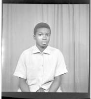 695. EAP449/2/19/695 Reference (shelfmark): EAP449/2/19/695 Title: A boy wearing a shirt, sitting profile view in the studio. Collection Area: Endangered Archives Programme Languages: Not applicable Date Range: 2nd half od the 20th century Extent: 1 TIFF image
