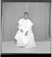 696. EAP449/2/19/696 Reference (shelfmark): EAP449/2/19/696 Title: A man wearing a boubou and a hat, sitting full frontal view in the studio. Collection Area: Endangered Archives Programme Languages: Not applicable Date Range: 2nd half od the 20th century Extent: 1 TIFF image