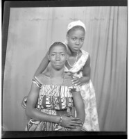 697. EAP449/2/19/697 Reference (shelfmark): EAP449/2/19/697 Title: Two girls wearing dresses and necklaces, sitting full frontal view in front of the other who is leaning over her profile view in the studio. Collection Area: Endangered Archives Programme Languages: Not applicable Date Range: 2nd half od the 20th century Extent: 1 TIFF image