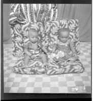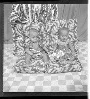 698. EAP449/2/19/698 Reference (shelfmark): EAP449/2/19/698 Title: Two babies both sitting on a cushion one of whom is sitting profile view and the other is sitting facing forward. Collection Area: Endangered Archives Programme Languages: Not applicable Date Range: 2nd half od the 20th century Extent: 1 TIFF image