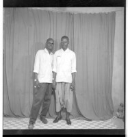 732. EAP449/2/19/732 Reference (shelfmark): EAP449/2/19/732 Title: Two men wearing shirts, pants, and glasses, standing full frontal view in the studio. Collection Area: Endangered Archives Programme Languages: Not applicable Date Range: 2nd half od the 20th century Extent: 1 TIFF image