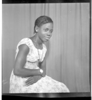 734. EAP449/2/19/734 Reference (shelfmark): EAP449/2/19/734 Title: A girl wearing a dress and a necklace, sitting profile view in the studio. Collection Area: Endangered Archives Programme Languages: Not applicable Date Range: 2nd half od the 20th century Extent: 1 TIFF image