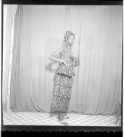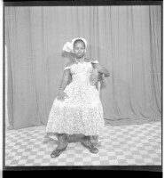 738. EAP449/2/19/738 Reference (shelfmark): EAP449/2/19/738 Title: A girl wearing a robe pagne (wrapper dress) and necklaces, standing profile view in the studio. Collection Area: Endangered Archives Programme Languages: Not applicable Date Range: 2nd half od the 20th century Extent: 1 TIFF image