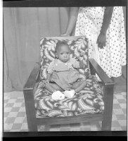 736. EAP449/2/19/736 Reference (shelfmark): EAP449/2/19/736 Title: A little boy wearing overalls, sitting profile view on a chair in the studio. Collection Area: Endangered Archives Programme Languages: Not applicable Date Range: 2nd half od the 20th century Extent: 1 TIFF image