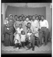 740. EAP449/2/19/740 Reference (shelfmark): EAP449/2/19/740 Title: A photograph of a 19 person family, 3 are children, 3 are women, and 13 are men in the studio. Collection Area: Endangered Archives Programme Languages: Not applicable Date Range: 2nd half od the 20th century Extent: 1 TIFF image