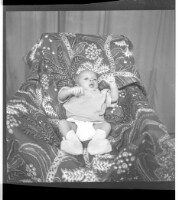 109. EAP449/2/20/109 Reference (shelfmark): EAP449/2/20/109 Title: Full portrait of a baby in diapers on a chair wearing a grey t-shirt and white under shorts, facing forward Collection Area: Endangered Archives Programme Languages: Not applicable Date Range: 2nd half od the 20th century Extent: 1 TIFF image