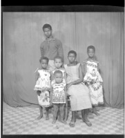 Copy of six people, children, a little girl sitting with three little girls to her lefts and a girl standing to her right, a young man in the background