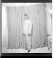 238. EAP449/2/20/238 Reference (shelfmark): EAP449/2/20/238 Title: Full portrait of a man standing wearing shirts and grey suits, facing forward Collection Area: Endangered Archives Programme Languages: Not applicable Date Range: 2nd half od the 20th century Extent: 1 TIFF image