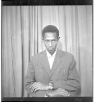 258. EAP449/2/20/258 Reference (shelfmark): EAP449/2/20/258 Title: un homme assi en tenu chemise costume noire et une montre un bic en poche prise vue studio de face Collection Area: Endangered Archives Programme Languages: Not applicable Date Range: 2nd half od the 20th century Extent: 1 TIFF image