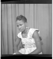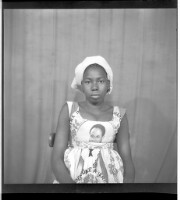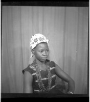 277. EAP449/2/20/277 Reference (shelfmark): EAP449/2/20/277 Title: A young girl standing wearing a dress, a necklace, a hairstyle and earrings, facing forward Collection Area: Endangered Archives Programme Languages: Not applicable Date Range: 2nd half od the 20th century Extent: 1 TIFF image