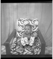 279. EAP449/2/20/279 Reference (shelfmark): EAP449/2/20/279 Title: Full portrait of a baby sitting on a chair wearing a t-shirt, facing forward Collection Area: Endangered Archives Programme Languages: Not applicable Date Range: 2nd half od the 20th century Extent: 1 TIFF image
