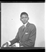27. EAP449/2/20/27 Reference (shelfmark): EAP449/2/20/27 Title: A young man wearing a white short sleeve t-shirt, a watch and a pen, sitting and facing sideways Collection Area: Endangered Archives Programme Languages: Not applicable Date Range: 2nd half od the 20th century Extent: 1 TIFF image