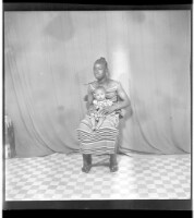 303. EAP449/2/20/303 Reference (shelfmark): EAP449/2/20/303 Title: A young girl sitting wearing a camisole, a long cloth, a hairstyle, and earrings with a baby , facing forward Collection Area: Endangered Archives Programme Languages: Not applicable Date Range: 2nd half od the 20th century Extent: 1 TIFF image