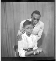 Two young men, on the left one wears a shirt and black pants, to the right a man wears two shirts, one white and one black, with arms crossed, wearing cacu and shorts, facing forward