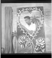 476. EAP449/2/20/476 Reference (shelfmark): EAP449/2/20/476 Title: A young man standing wearing a white shirt, holding the end of the year table with a heart design, facing forward Collection Area: Endangered Archives Programme Languages: Not applicable Date Range: 2nd half od the 20th century Extent: 1 TIFF image