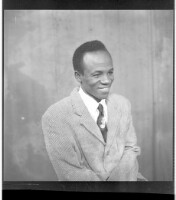 571. EAP449/2/20/571 Reference (shelfmark): EAP449/2/20/571 Title: A man sitting, wearing a white shirt, a grey suit, and a smile, facing forward Collection Area: Endangered Archives Programme Languages: Not applicable Date Range: 2nd half od the 20th century Extent: 1 TIFF image