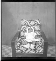 572. EAP449/2/20/572 Reference (shelfmark): EAP449/2/20/572 Title: Full portrait of a baby in diapers on a chair, wearing white, facing forward Collection Area: Endangered Archives Programme Languages: Not applicable Date Range: 2nd half od the 20th century Extent: 1 TIFF image