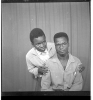573. EAP449/2/20/573 Reference (shelfmark): EAP449/2/20/573 Title: Two men, one sitting wearing a grey shirt, glasses, a pen in the pocket, the young man is standing, facing forward Collection Area: Endangered Archives Programme Languages: Not applicable Date Range: 2nd half od the 20th century Extent: 1 TIFF image