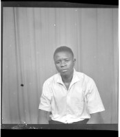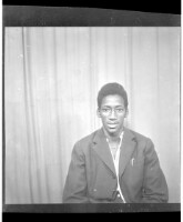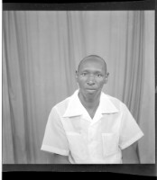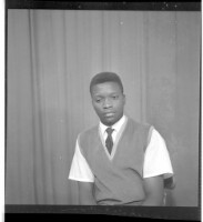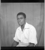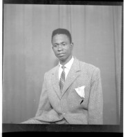Full portrait of four people, to the left is a young man standing wearing a white shirt and black pants, a girl is standing in the middle, another girl is sitting on a chair wearing a dress, a head scarf, and a necklace, and to the right is a young man st