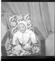 Full portrait of four young girls dressed the same, on the left the oldest is sitting wearing a black dress, a white head scarf, and a necklace, the girl standing is wearing a camisole and a loincloth, one girl sitting is wearing a camisole and a full lo