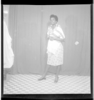 172. EAP449/2/21/172 Reference (shelfmark): EAP449/2/21/172 Title: A girl wearing a dress and a necklace, standing profile view in the studio. Collection Area: Endangered Archives Programme Languages: Not applicable Date Range: 2nd half od the 20th century Extent: 1 TIFF image