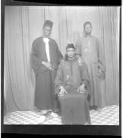 179. EAP449/2/21/179 Reference (shelfmark): EAP449/2/21/179 Title: 3 men wearing boubous: one sitting full frontal view in front of two others, one standing profile view and the other standing facing forward. Collection Area: Endangered Archives Programme Languages: Not applicable Date Range: 2nd half od the 20th century Extent: 1 TIFF image