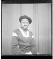 208. EAP449/2/21/208 Reference (shelfmark): EAP449/2/21/208 Title: A man wearing a shirt and a cap, sitting profile view in the studio. Collection Area: Endangered Archives Programme Languages: Not applicable Date Range: 2nd half od the 20th century Extent: 1 TIFF image