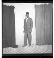 313. EAP449/2/21/313 Reference (shelfmark): EAP449/2/21/313 Title: A man wearing a suit, standing facing forward in the studio. Collection Area: Endangered Archives Programme Languages: Not applicable Date Range: 2nd half od the 20th century Extent: 1 TIFF image