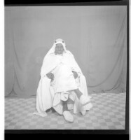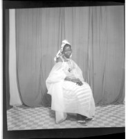 320. EAP449/2/21/320 Reference (shelfmark): EAP449/2/21/320 Title: A woman wearing a loose dress, a headscarf, and necklaces, is sitting facing forward in the studio. Collection Area: Endangered Archives Programme Languages: Not applicable Date Range: 2nd half od the 20th century Extent: 1 TIFF image