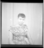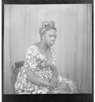 322. EAP449/2/21/322 Reference (shelfmark): EAP449/2/21/322 Title: A woman wearing a robe pagne (wrapper dress), sitting profile view in the studio. Collection Area: Endangered Archives Programme Languages: Not applicable Date Range: 2nd half od the 20th century Extent: 1 TIFF image