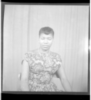 321. EAP449/2/21/321 Reference (shelfmark): EAP449/2/21/321 Title: A woman wearing a dress and a chain necklace and is sitting profile view in the studio. Collection Area: Endangered Archives Programme Languages: Not applicable Date Range: 2nd half od the 20th century Extent: 1 TIFF image
