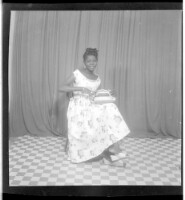 329. EAP449/2/21/329 Reference (shelfmark): EAP449/2/21/329 Title: A girl wearing a dress, holding a hand-made purse and standing profile view in the studio. Collection Area: Endangered Archives Programme Languages: Not applicable Date Range: 2nd half od the 20th century Extent: 1 TIFF image