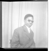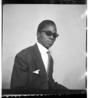 40. EAP449/2/21/40 Reference (shelfmark): EAP449/2/21/40 Title: A man wearing a suit, a tie, and sunglasses, sitting profile view in the studio. Collection Area: Endangered Archives Programme Languages: Not applicable Date Range: 2nd half od the 20th century Extent: 1 TIFF image