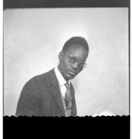 31. EAP449/2/21/31 Reference (shelfmark): EAP449/2/21/31 Title: A man wearing a jacket and glasses, sitting profile view in the studio. Collection Area: Endangered Archives Programme Languages: Not applicable Date Range: 2nd half od the 20th century Extent: 1 TIFF image