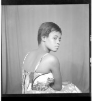 37. EAP449/2/21/37 Reference (shelfmark): EAP449/2/21/37 Title: A girl wearing a dress, sitting profile view in the studio. Collection Area: Endangered Archives Programme Languages: Not applicable Date Range: 2nd half od the 20th century Extent: 1 TIFF image