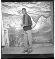 38. EAP449/2/21/38 Reference (shelfmark): EAP449/2/21/38 Title: A boy wearing running pants and a scarf around his neck, standing profile view in the studio. Collection Area: Endangered Archives Programme Languages: Not applicable Date Range: 2nd half od the 20th century Extent: 1 TIFF image