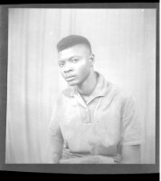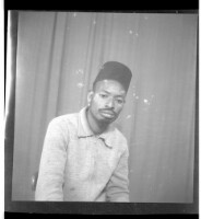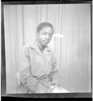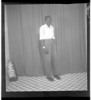 403. EAP449/2/21/403 Reference (shelfmark): EAP449/2/21/403 Title: A man wearing a shirt and pants, standing profile view in the studio. Collection Area: Endangered Archives Programme Languages: Not applicable Date Range: 2nd half od the 20th century Extent: 1 TIFF image