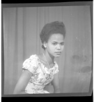 404. EAP449/2/21/404 Reference (shelfmark): EAP449/2/21/404 Title: A girl wearing a dress and a necklace, sitting profile view in the studio. Collection Area: Endangered Archives Programme Languages: Not applicable Date Range: 2nd half od the 20th century Extent: 1 TIFF image