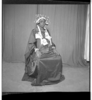 51. EAP449/2/21/51 Reference (shelfmark): EAP449/2/21/51 Title: A woman wearing a dress, a headscarf, and a necklace containing silver bills of the Malian franc with the head of the president, Modibo Keitaune. She is sitting profile view in the studio. Collection Area: Endangered Archives Programme Languages: Not applicable Date Range: 2nd half od the 20th century Extent: 1 TIFF image