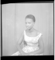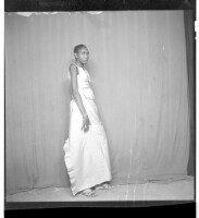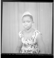 52. EAP449/2/21/52 Reference (shelfmark): EAP449/2/21/52 Title: A girl wearing a robe pagne (wrapper dress) and a chain necklace, standing profile view in the studio. Collection Area: Endangered Archives Programme Languages: Not applicable Date Range: 2nd half od the 20th century Extent: 1 TIFF image