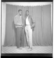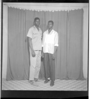 155. EAP449/2/22/155 Reference (shelfmark): EAP449/2/22/155 Title: Two men wearing shirts and pants standing in profile in the studio. Collection Area: Endangered Archives Programme Languages: Not applicable Date Range: 2nd half od the 20th century Extent: 1 TIFF image