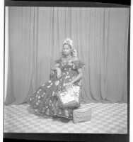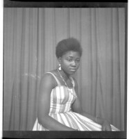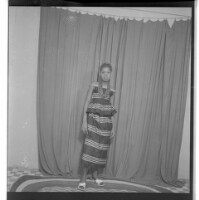 160. EAP449/2/22/160 Reference (shelfmark): EAP449/2/22/160 Title: A girl wearing a dress, pagne, and necklace standing face-forward in the studio. Collection Area: Endangered Archives Programme Languages: Not applicable Date Range: 2nd half od the 20th century Extent: 1 TIFF image