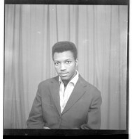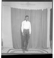 159. EAP449/2/22/159 Reference (shelfmark): EAP449/2/22/159 Title: A man wearing a shirt and pants standing face-forward in the studio. Collection Area: Endangered Archives Programme Languages: Not applicable Date Range: 2nd half od the 20th century Extent: 1 TIFF image
