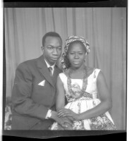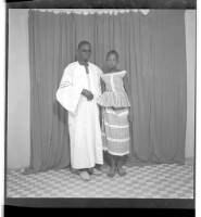 153. EAP449/2/22/153 Reference (shelfmark): EAP449/2/22/153 Title: Two people, a man wearing a shirt and pants and a woman wearing a dress and pagne, standing face-forward in the studio. Collection Area: Endangered Archives Programme Languages: Not applicable Date Range: 2nd half od the 20th century Extent: 1 TIFF image