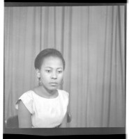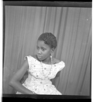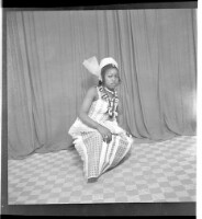 166. EAP449/2/22/166 Reference (shelfmark): EAP449/2/22/166 Title: A woman wearing a dress and pagne sitting in profile in the studio. Collection Area: Endangered Archives Programme Languages: Not applicable Date Range: 2nd half od the 20th century Extent: 1 TIFF image