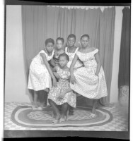 163. EAP449/2/22/163 Reference (shelfmark): EAP449/2/22/163 Title: Five girls wearing dresses, one sitting on a chair before the others standing around her in the studio. Collection Area: Endangered Archives Programme Languages: Not applicable Date Range: 2nd half od the 20th century Extent: 1 TIFF image
