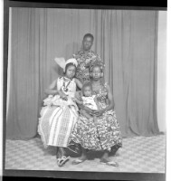 165. EAP449/2/22/165 Reference (shelfmark): EAP449/2/22/165 Title: Four people, two women wearing dresses sitting, one with a baby, and a man wearing a shirt standing face-forward behind them in the studio. Collection Area: Endangered Archives Programme Languages: Not applicable Date Range: 2nd half od the 20th century Extent: 1 TIFF image