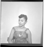 182. EAP449/2/22/182 Reference (shelfmark): EAP449/2/22/182 Title: A girl wearing a dress sitting in profile in the studio. Collection Area: Endangered Archives Programme Languages: Not applicable Date Range: 2nd half od the 20th century Extent: 1 TIFF image