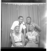 188. EAP449/2/22/188 Reference (shelfmark): EAP449/2/22/188 Title: Two women sitting on chairs and two men, one with a pipe, standing behind in the studio. Collection Area: Endangered Archives Programme Languages: Not applicable Date Range: 2nd half od the 20th century Extent: 1 TIFF image