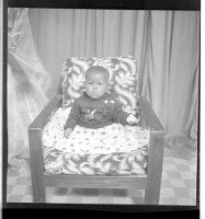 189. EAP449/2/22/189 Reference (shelfmark): EAP449/2/22/189 Title: A baby sitting face-forward in a chair in the studio. Collection Area: Endangered Archives Programme Languages: Not applicable Date Range: 2nd half od the 20th century Extent: 1 TIFF image